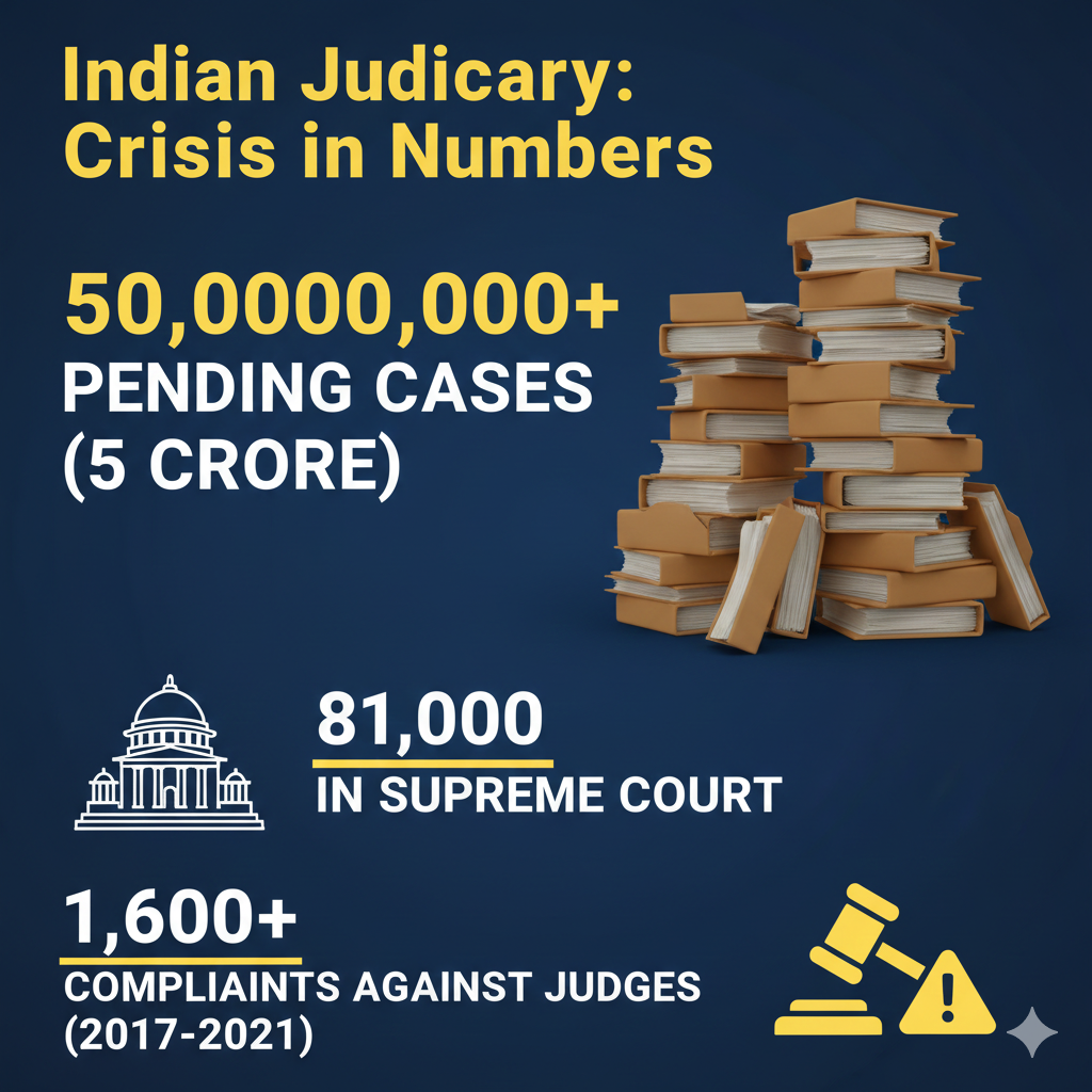 2. मामलों का अंबार: देश की अदालतों में 5 करोड़ से अधिक मामले लंबित हैं, जिनमें सुप्रीम कोर्ट के 81 हजार मामले शामिल हैं।