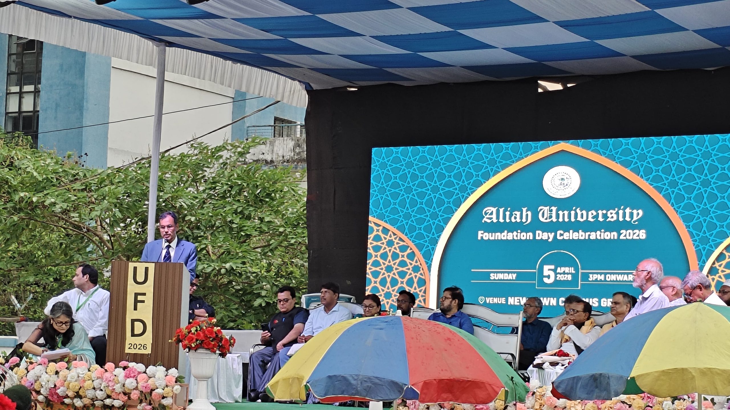 विश्वविद्यालय के न्यू टाउन कैंपस में रविवार को स्थापना दिवस अत्यंत गरिमा और उत्साह के साथ मनाया गया। यह अवसर विश्वविद्यालय की लगभग दो दशकों की शैक्षणिक यात्रा, सर्वांगीण विकास और सामाजिक सेवाओं का प्रतीक बन गया। इस प्रतिष्ठित समारोह में विभिन्न विश्वविद्यालयों के कुलपति, रजिस्ट्रार, पूर्व व वर्तमान नौकरशाह और मदरसों के प्रधानाचार्यों (Headmasters) ने भाग लिया।
