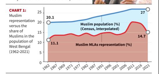 पश्चिम बंगाल की राजनीति में, दशकों से पर्याप्त प्रतिनिधित्व न मिलने का यह सिलसिला जारी है। 2011 में, 20.4% मुस्लिम विधायक थे, लेकिन 2021 तक यह संख्या गिरकर 14.7% रह गई, जो उनकी जनसंख्या के अनुपात से 12% से अधिक का अंतर है।